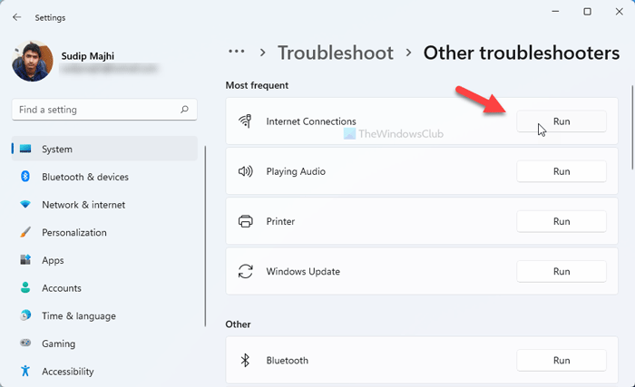 - WybierzPołączenia internetoweNarzędzie do rozwiązywania problemów.