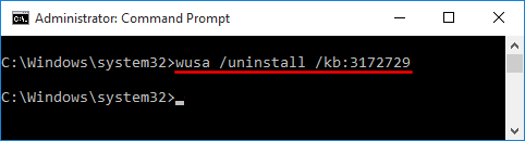 wusa /uninstall /kb:3172729 /quiet /norestart