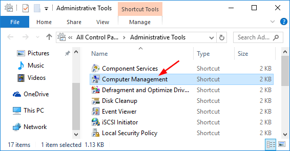 Opção 7: Abra o Gerenciamento do Computador no Painel de Controle