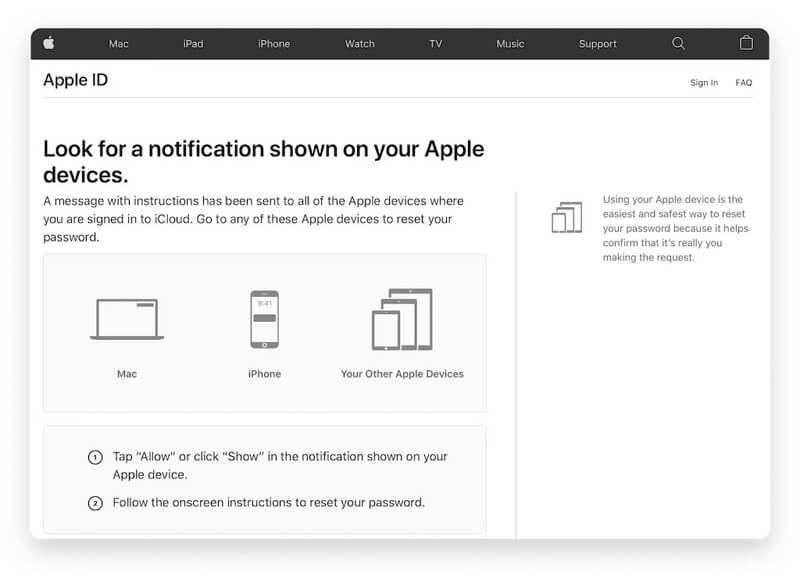 Etapa 4:Uma notificação aparecerá em um dos seus dispositivos Apple confiáveis. Clique ou toque em Permitir para aprovar a operação de redefinição.