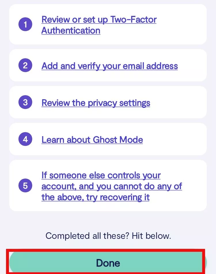 - Depois de seguir todas as etapas, toque em Concluído e pronto, sua conta do Snapchat está mais segura!