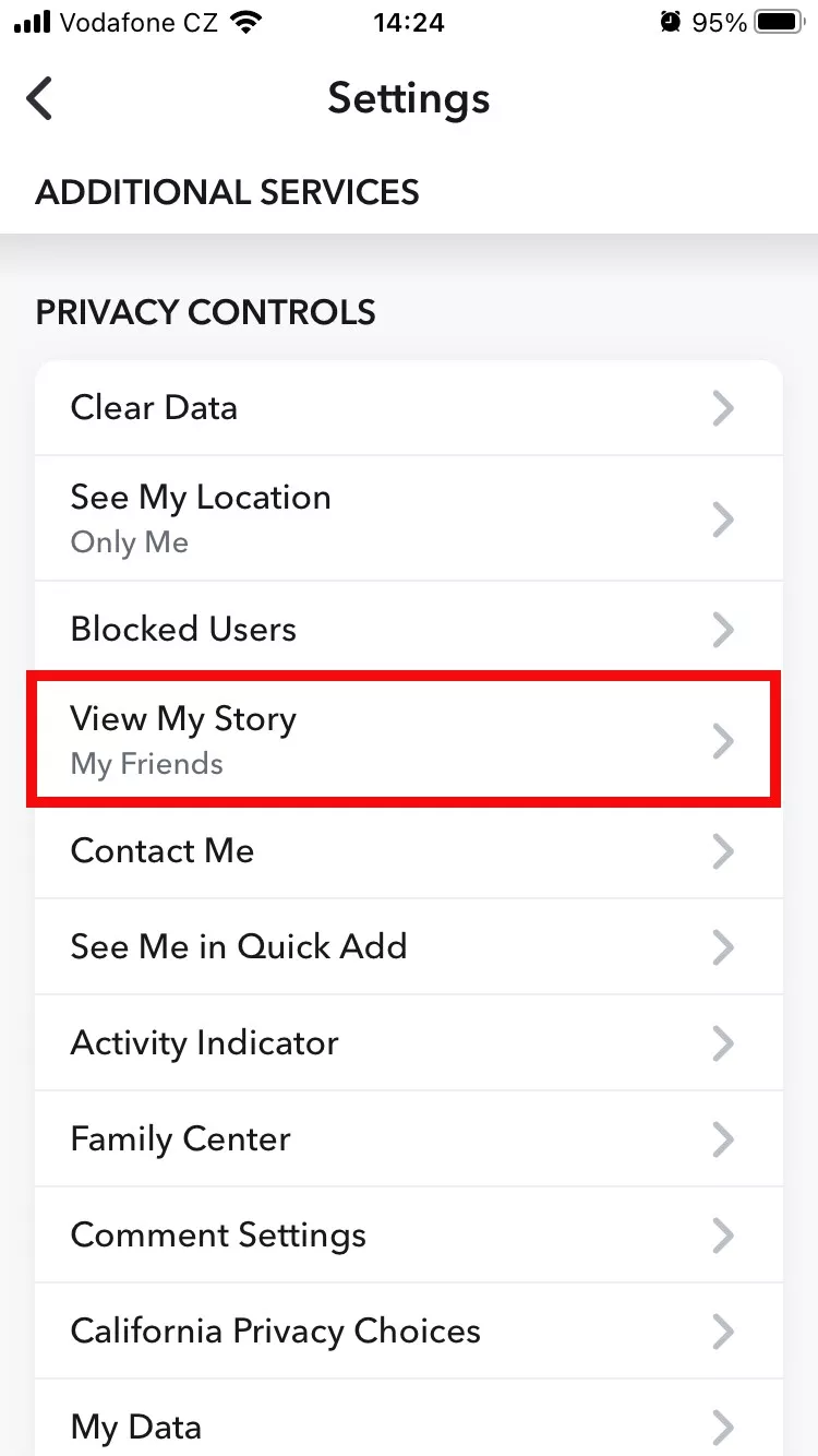 - Ou, se o seu ex não estiver entre seus amigos no Snapchat, mantenha-o ativadoMeus amigos. Isso os impedirá completamente de ver suas histórias, a menos que tenham amigos entre seus amigos.