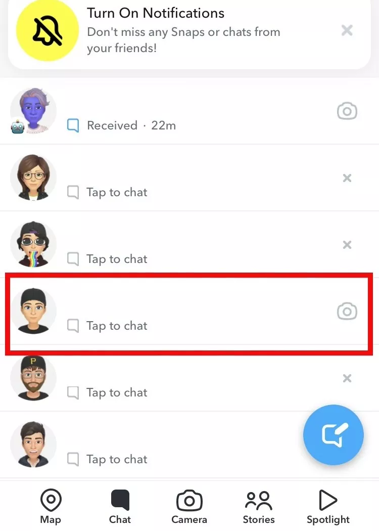 - Toque brevemente no avatar do seu ex para abrir o bate-papo.