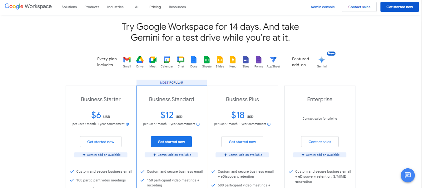 GêmeosPara quem é novo no Google Workspace, está disponível um teste gratuito de 14 dias. Ele permite que você experimente os recursos, incluindo o Gemini, e veja como eles se adaptam ao fluxo de trabalho da sua equipe. O Google Workspace também oferece armazenamento flexível em pool, compartilhado entre todos os serviços, garantindo que cada membro da equipe possa acessar os recursos de que precisa.