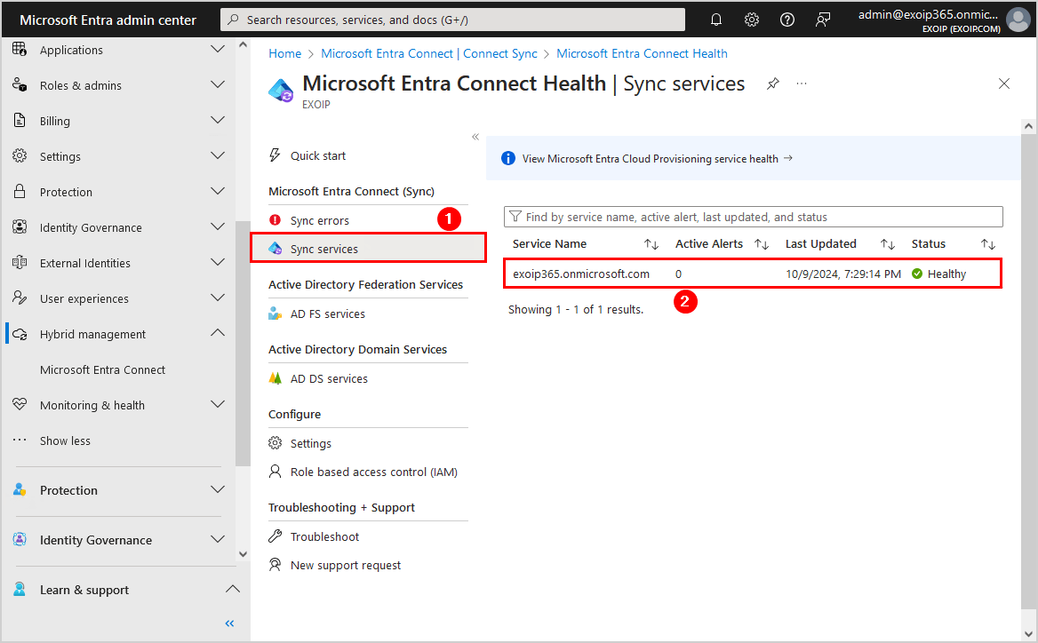 Encontre a versão do Microsoft Entra Connect no centro de administração do Microsoft Entra