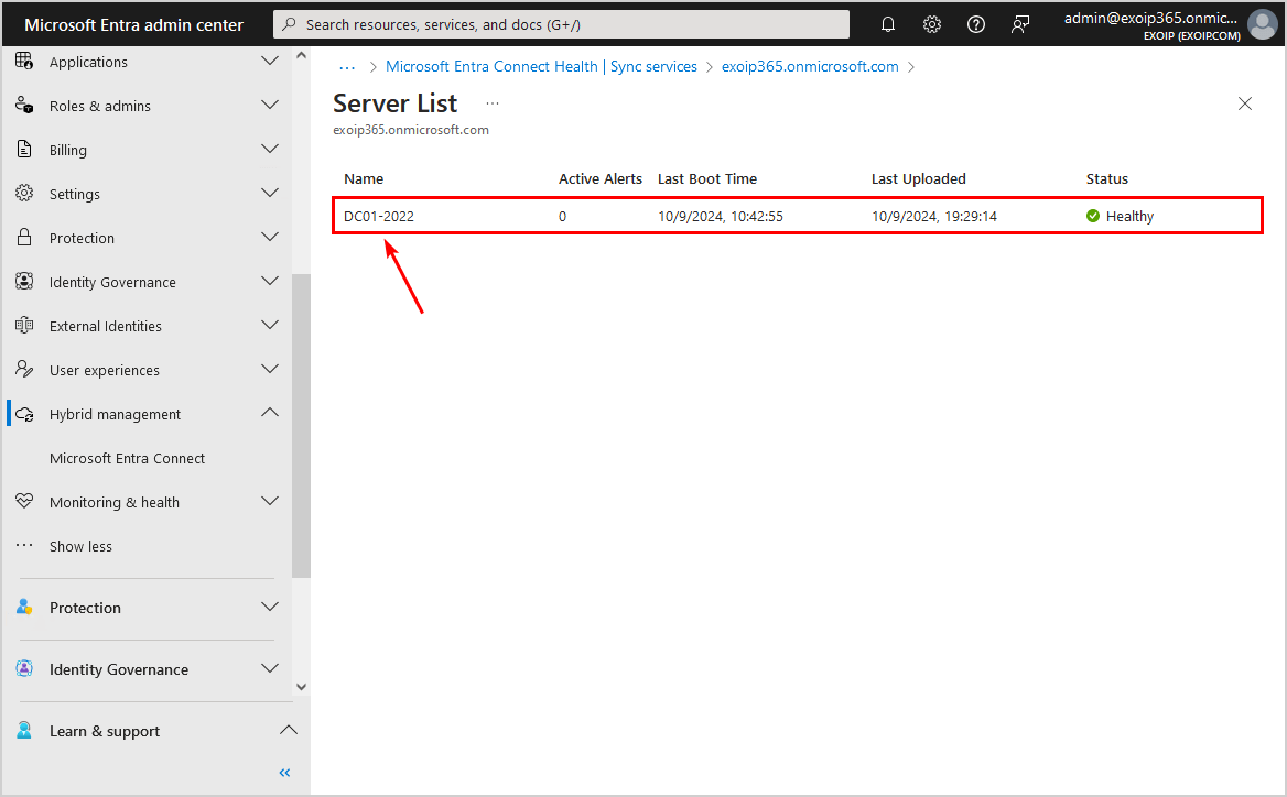 Para saber mais, leia o artigo Como encontrar o servidor Microsoft Entra Connect.