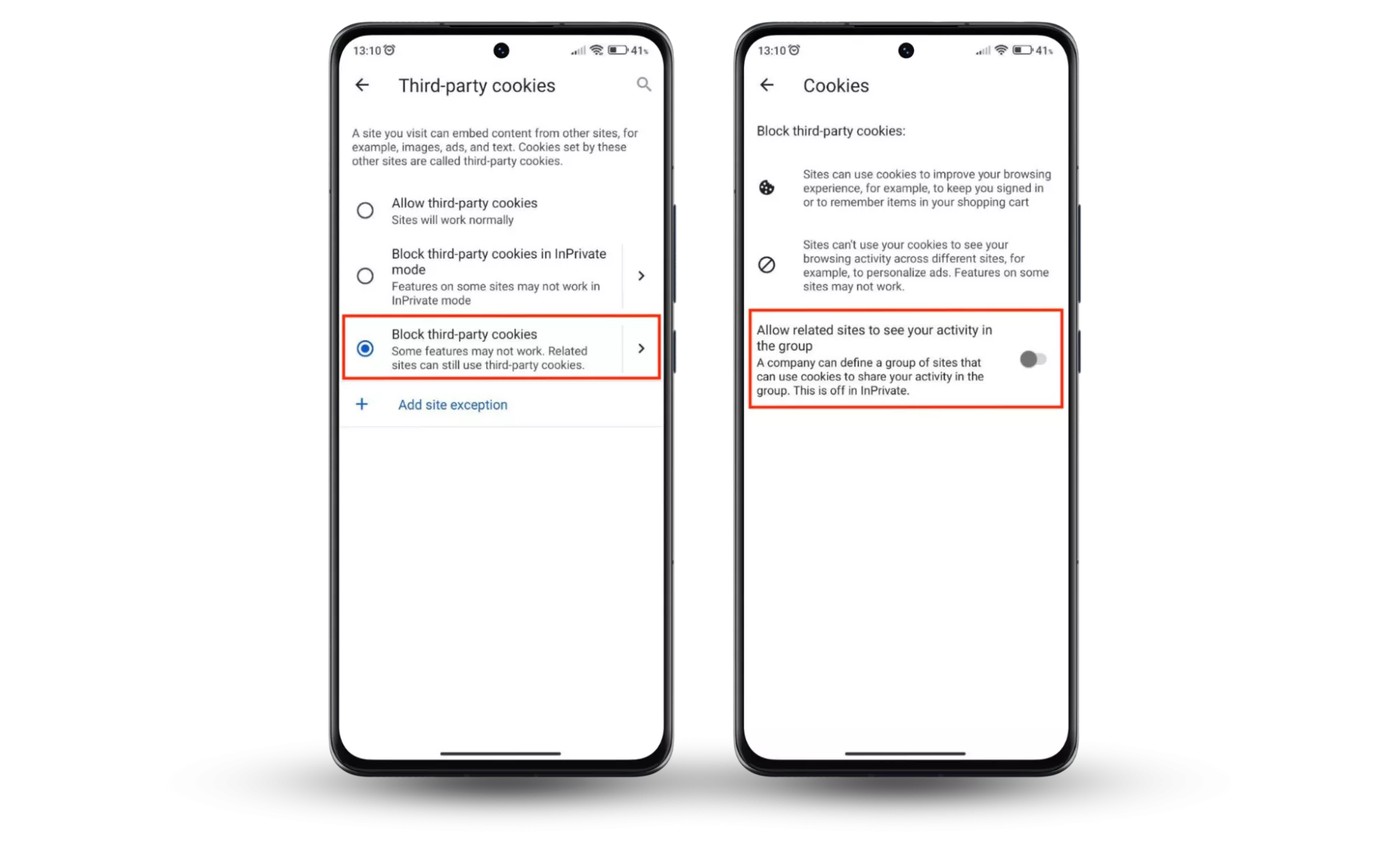Se você usa um dispositivo Android, pode bloquear os cookies do Microsoft Edge da seguinte maneira: