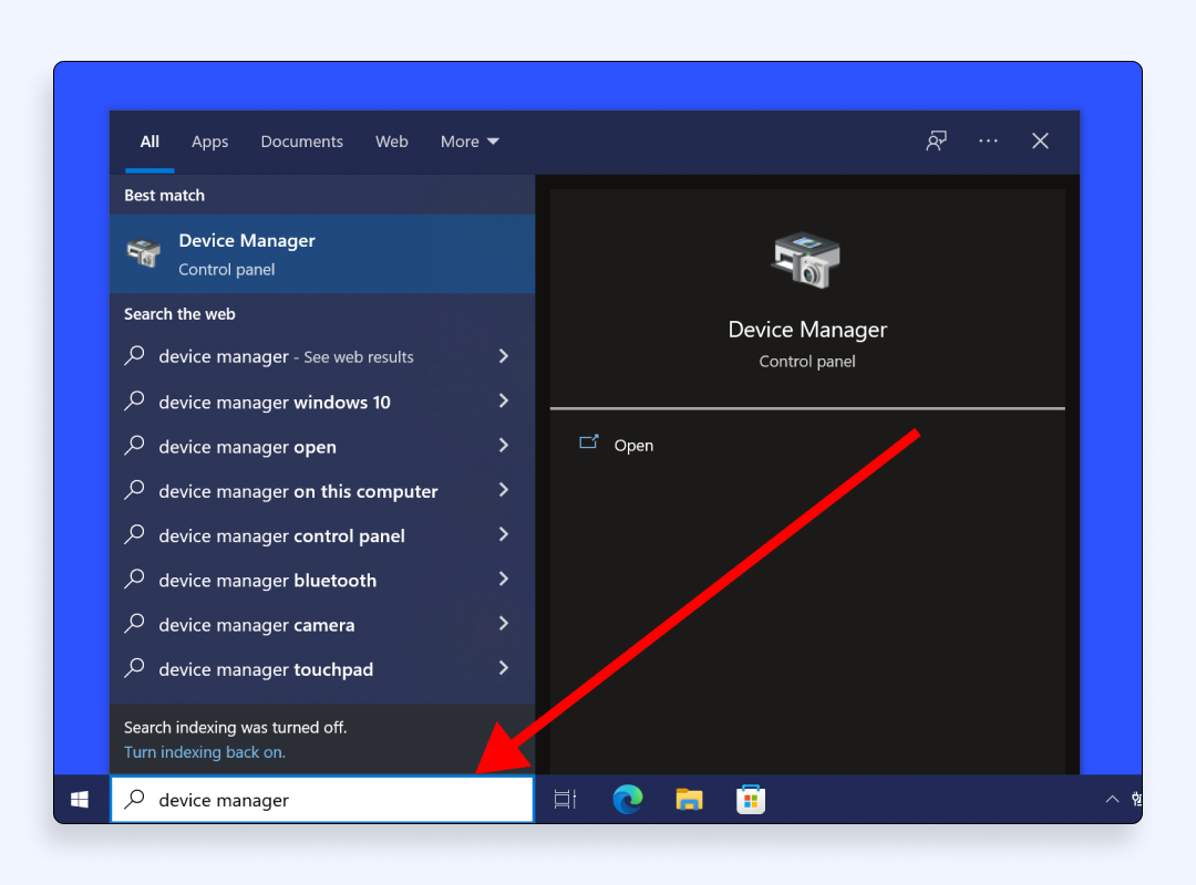 - Digite “gerenciador de dispositivos” na barra de pesquisa do Windows