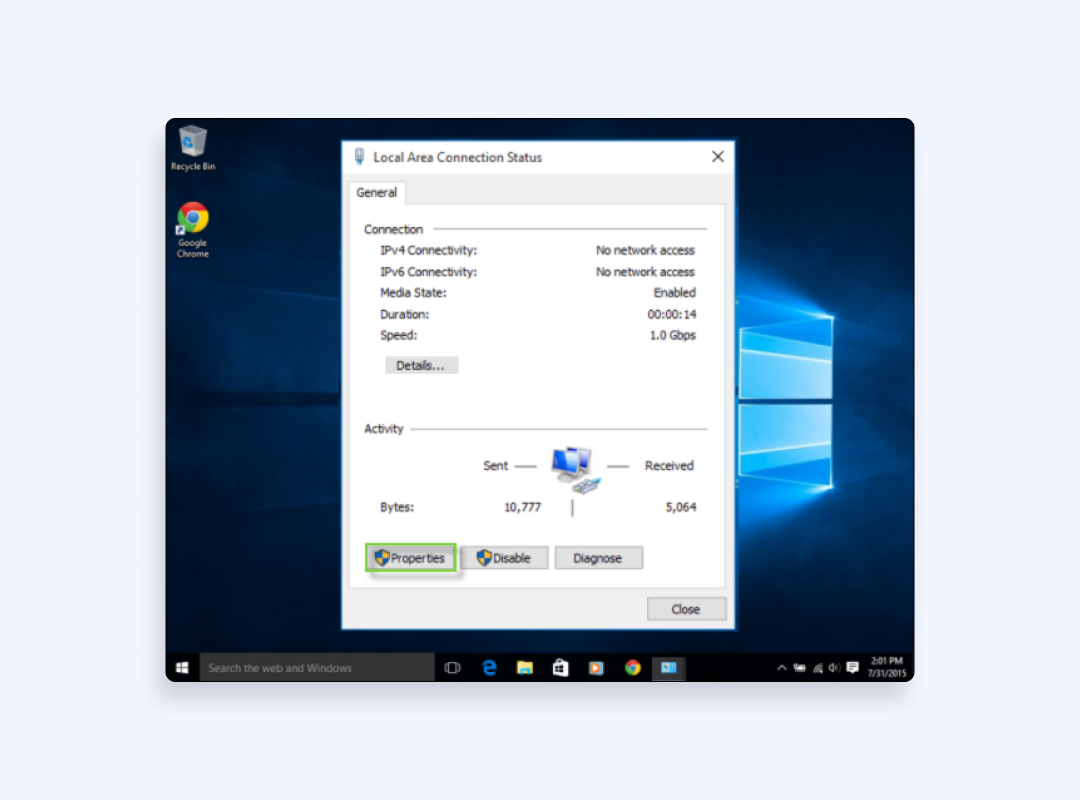 - Clique com o botão direito na conexão ativa e abra Propriedades.