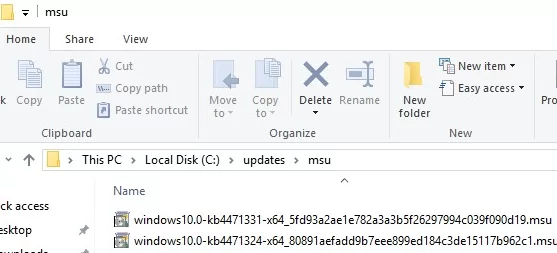 - C: atualizaçõesmsu– é o diretório para o qual você precisa copiar os arquivos de atualização para sua versão do Windows no formato MSU;