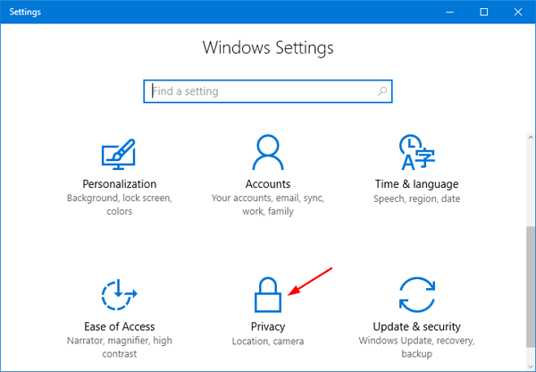 - Clique noPrivacidadeícone na janela Configurações.