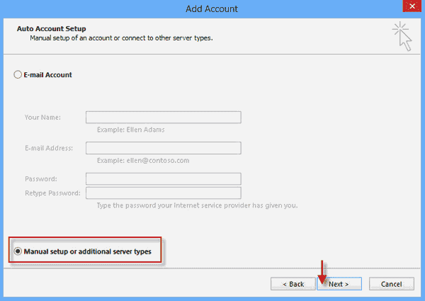 Etapa 3: selecioneConfiguração manual ou tipos de servidores adicionaise cliquePróximo.