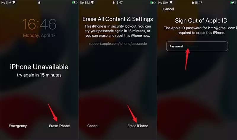 Toque na opção Apagar iPhone no canto inferior direito da tela (se estiver exibido), toque em Apagar iPhone novamente e digite a senha do ID Apple conectado neste iPhone. O iPhone começará então a apagar todo o conteúdo e configurações e, quando terminar, você poderá configurá-lo e acessá-lo novamente. Se não houver opção de exclusão no iPhone indisponível, vá para o próximo método.