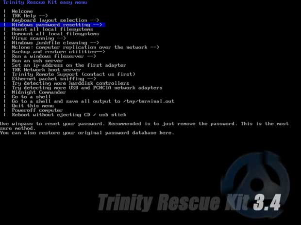 Alterar senha do Windows offline com Trinity Rescue Kit