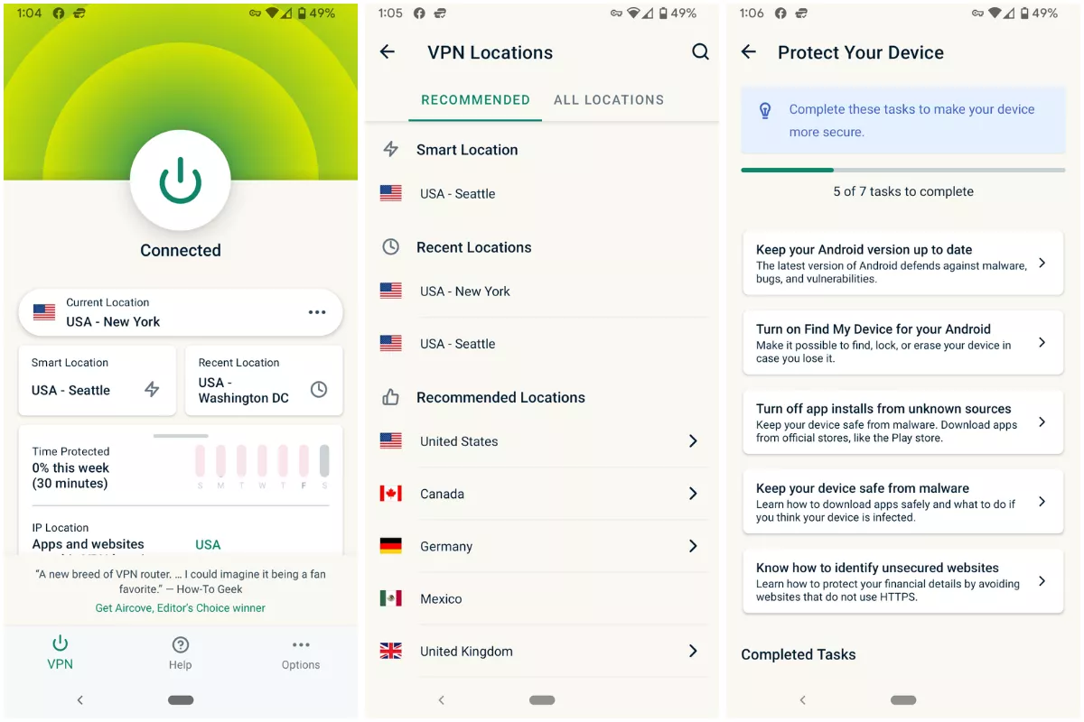 Com mais de 3.000 servidores e mais de 30.000 endereços IP, ExpressVPN é uma solução que você vai querer experimentar. O NordVPN também anda cara a cara quando se trata de downloads; ambos têm mais de 50 milhões de downloads na Google Play Store.