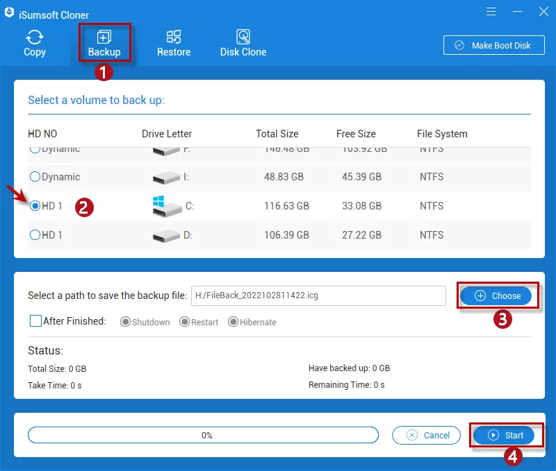 Nota: Mesmo quando o seu computador apresenta falha no sistema e não inicia, o iSoft Cloner também permite fazer backup de arquivos sem inicializar no Windows.