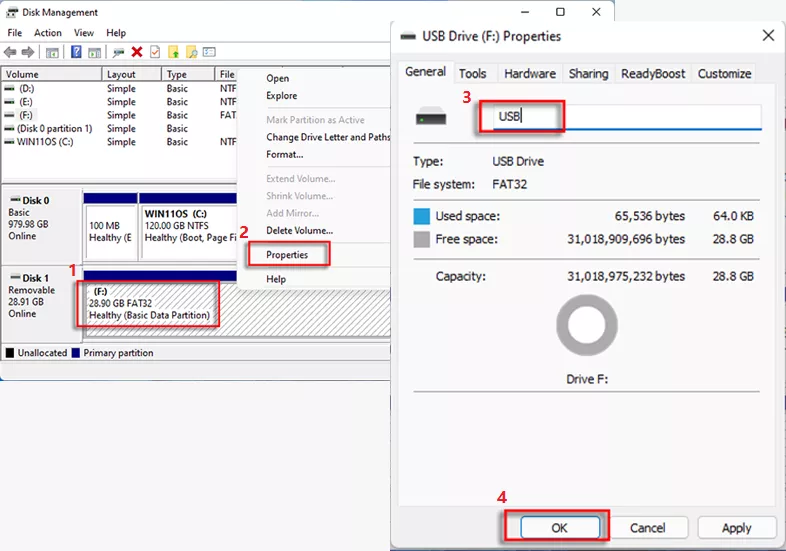 rótuloUSB. Em seguida, selecioneOKbotão.