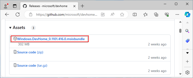 e escolha a versão mais recente do Dev Home para baixar na unidade D.