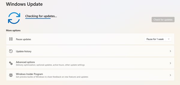 2. Aqui você receberá todas as atualizações devidas caso já tenha conectado o dispositivo à internet. Caso contrário, clique emVerifique se há atualizaçõespara obter as atualizações mais recentes.