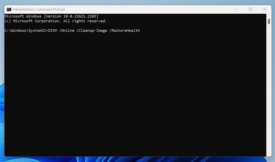 Para descartar a possibilidade de arquivos de sistema corrompidos, você deve executar a verificação de manutenção de imagens de implantação por meio do prompt de comando. Veja como executar a ferramenta no Windows 11.