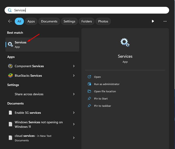 1. Digite Serviços na Pesquisa do Windows 11. A seguir, abra oServiçosaplicativo da lista de melhores resultados de correspondência.
