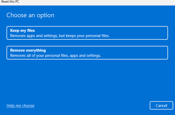 Isso iniciará a ferramenta de redefinição do Windows 11. O processo de redefinição pode demorar um pouco; evite reiniciar ou desligar durante esse período.