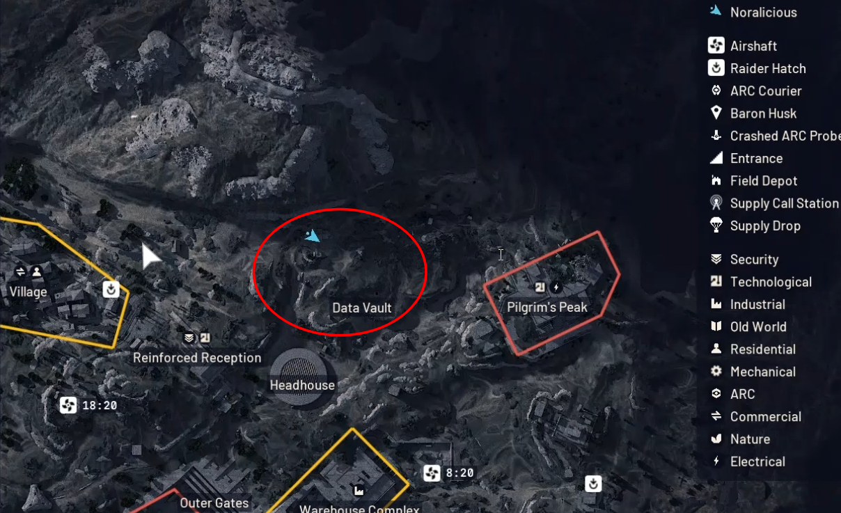 Viaje para o norte do Data Vault. A localização exata é mostrada abaixo.