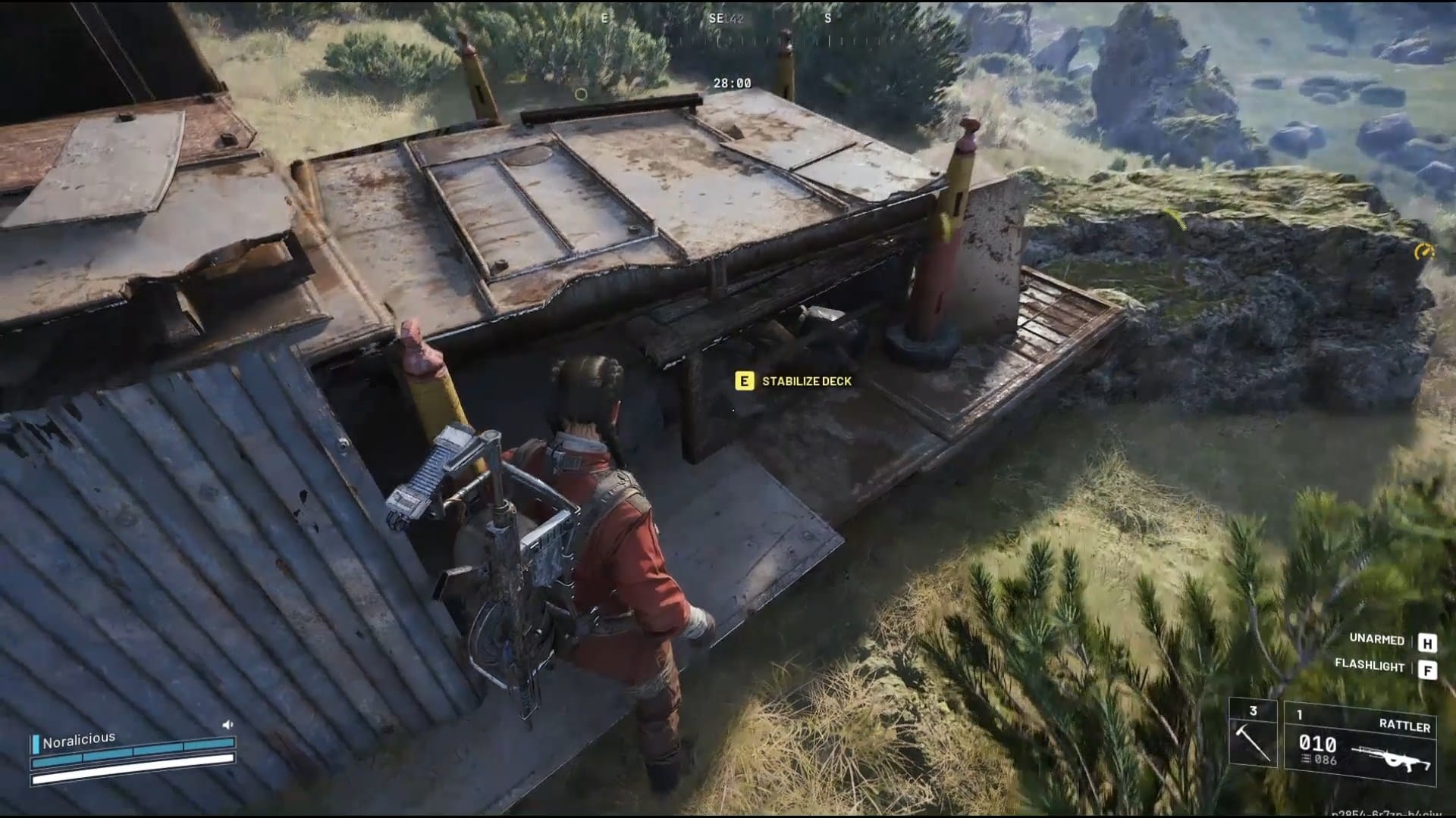 - Pregue as placas do telhado da estrutura do Raider perto de Trapper’s Glade