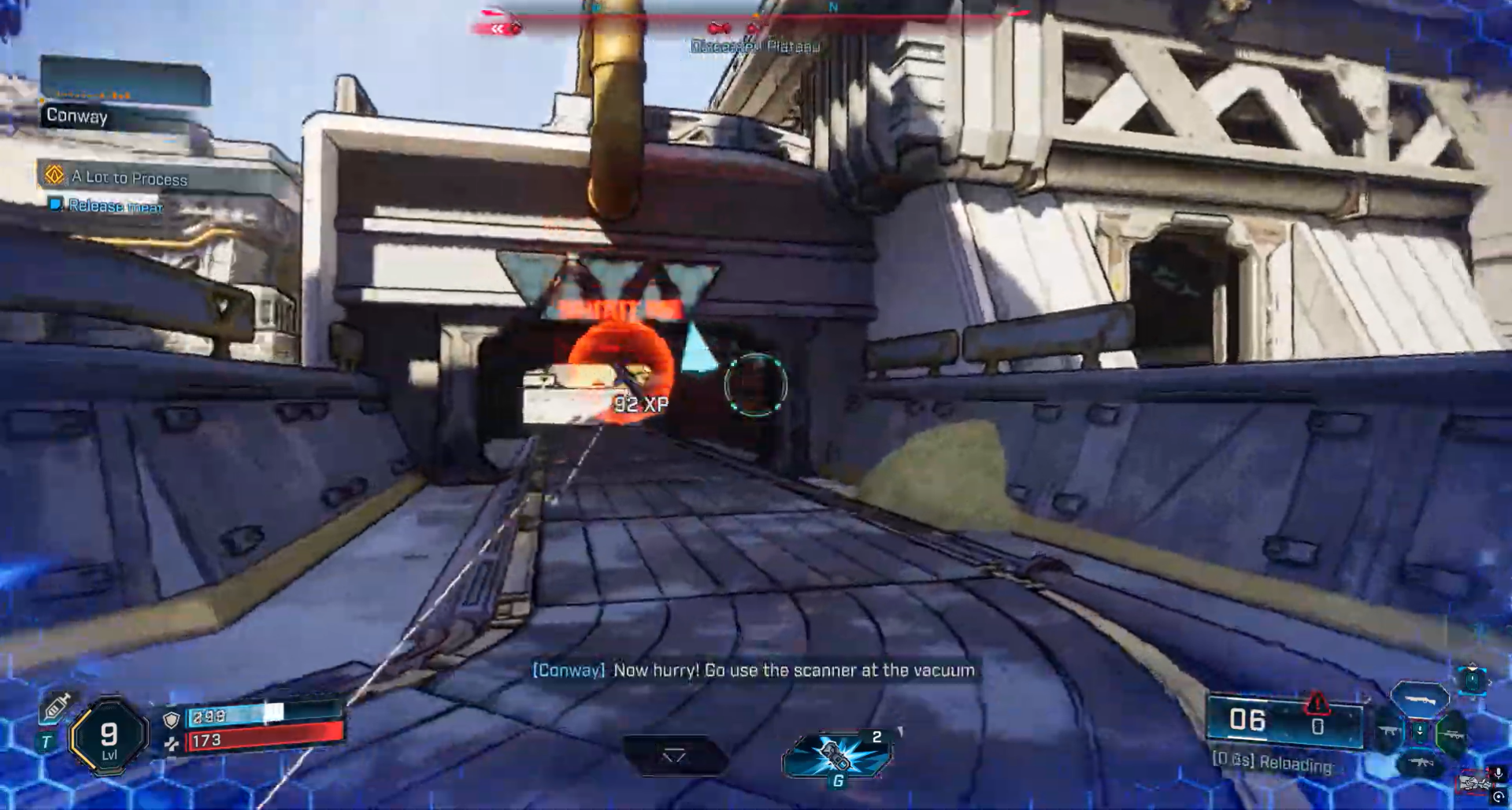 Elimine os inimigos na área do telhado. Motores e Synths descartam circuitos de controle, enquanto Pinheads descartam pacotes de transponders.