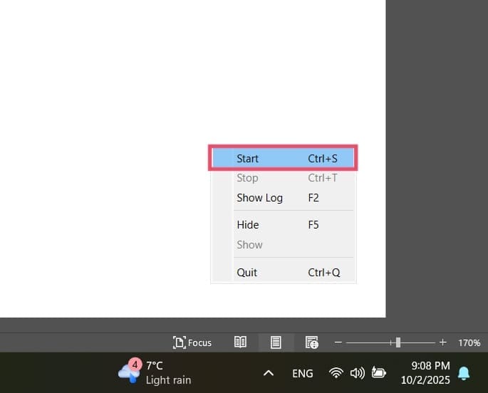 Etapa 6.Após a instalação, vá para a bandeja do sistema no Windows ou na barra de menu no Mac, clique com o botão direito no ícone InputLeap e selecione “Iniciar”. Isso solicita que o servidor comece a controlar o(s) cliente(s), desde que ambos estejam conectados na mesma rede. Depois de pressionar “Parar” no cliente (ou desligá-lo), as entradas do mouse e do teclado serão revertidas para o servidor.
