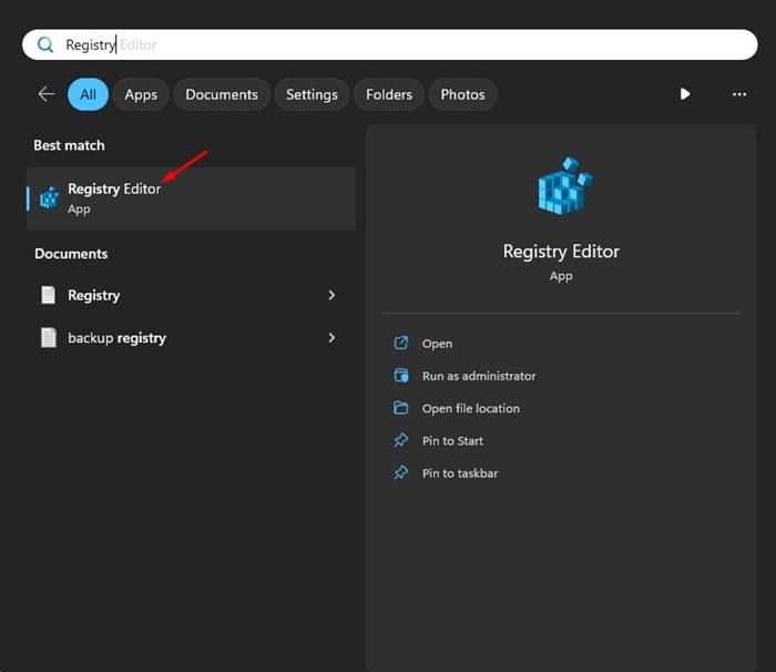 1. Abra oEditor de registroda Pesquisa do Windows.