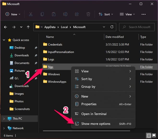 - Clique com o botão direito noNgcpasta e selecioneMostrar mais opções.