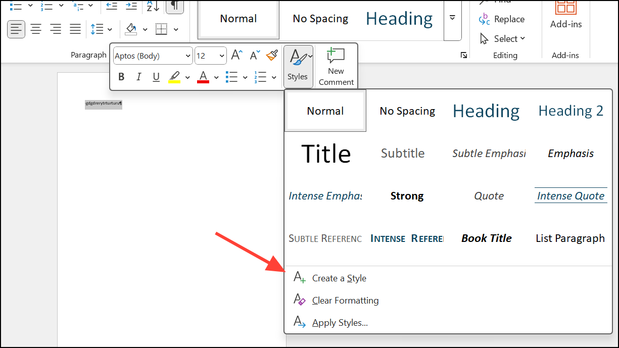 Etapa 1:Crie estilos personalizados para títulos, corpo de texto, marcadores e tabelas usandoHome > Styles > Create a Style.