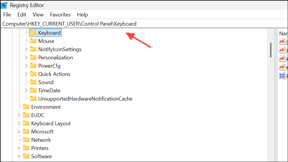 HKEY_CURRENT_USERControl PanelKeyboard