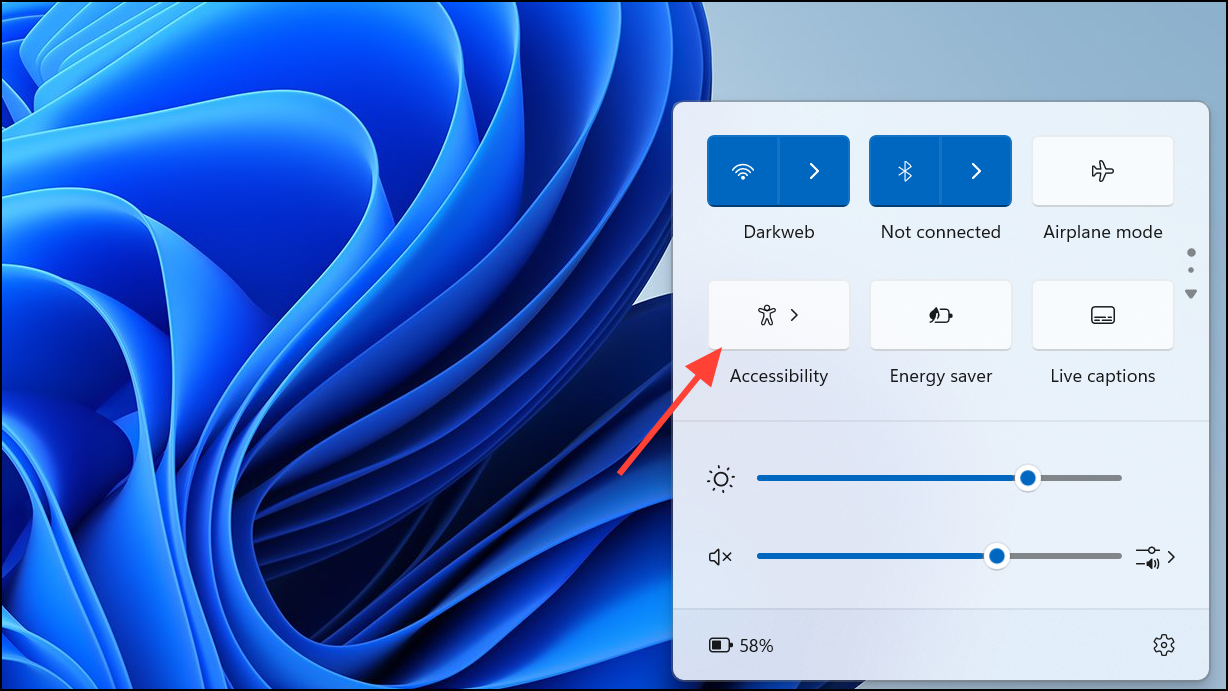 Etapa 1:ImprensaWindows + Apara abrir o painel Configurações rápidas. Em seguida, clique no ícone “Acessibilidade” quando o painel aparecer.