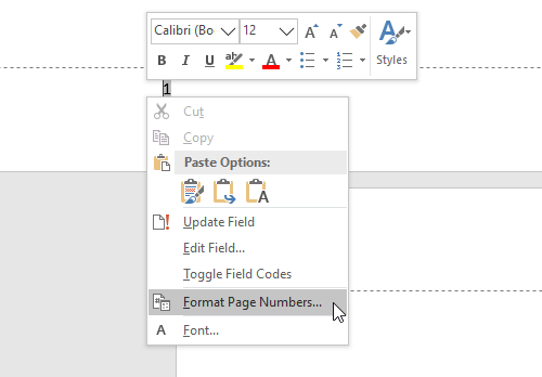 Às vezes, você pode querer iniciar o número da página a partir de um dígito específico por qualquer motivo. Nesse momento, você pode seguir estas etapas. Para começar, certifique-se de já ter inserido os números das páginas no seu documento. Depois disso, clique com o botão direito no número da página e selecioneFormatar números de páginaopção no menu de contexto.