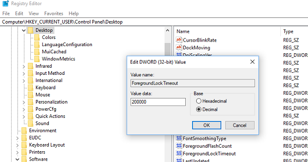 Altere o valor deForegroundLockTimeoutde 200.000 a0.
