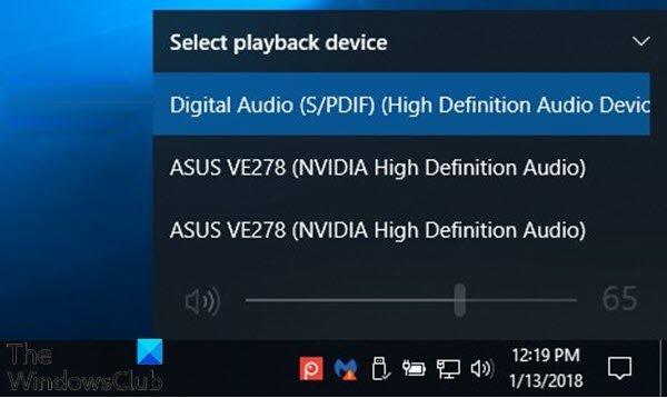 - Clique no dispositivo de reprodução que deseja usar no menu. O Windows irá então mudar para ele.