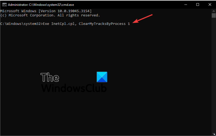 - Para excluir arquivos da Internet, digite ou copie e cole a seguinte linha de comando e cliqueDigitarno teclado: