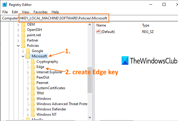 Na chave da Microsoft, deve haver umBordachamada chave de registro. Se não estiver presente, entãoe, em seguida, defina seu nome comoBorda.