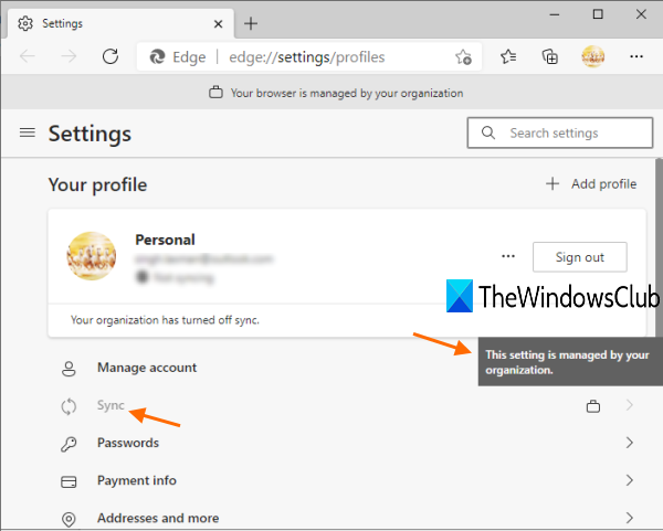 Como Firefox e Google Chrome,Microsoft bordatambém vem com umSincronização de dadosrecurso. Você podee entre com sua conta da Microsoft para qualquer perfil, bem como. O recurso de sincronização permite sincronizar seus favoritos, configurações de navegação, senhas, histórico, extensões, coleções, etc., em todos os dispositivos. Se você quiserdesativar a sincronização para todos os perfis de usuário, usandoEditor de registroentão este post irá ajudá-lo.