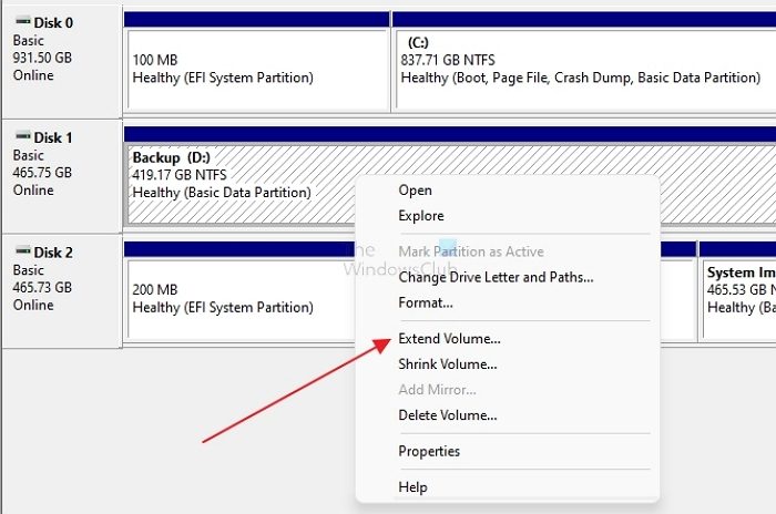 - Clique com o botão direito no disco onde está o problema e escolha estender ou reduzir