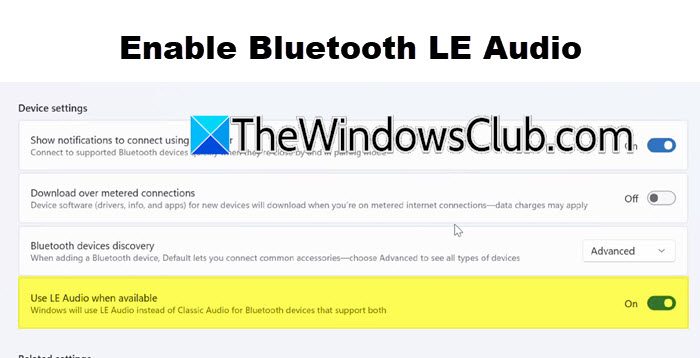 Áudio Bluetooth de baixa energia (Áudio LE)é uma nova tecnologia introduzida no Windows 11 que permite streaming de áudio por Bluetooth Low Energy. Ao contrário do Áudio Bluetooth Clássico, que usa perfis como A2DP ou HFP, o LE Audio usa perfis Bluetooth modernos, como o Perfil de Telefonia e Áudio de Mídia (TMAP). Neste post veremos comohabilitar áudio Bluetooth LE no Windows 11para benefícios adicionais.