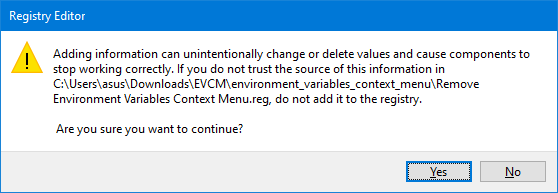 Clique duas vezes noRemover menu de contexto de variáveis de ambiente.regarquivo.
