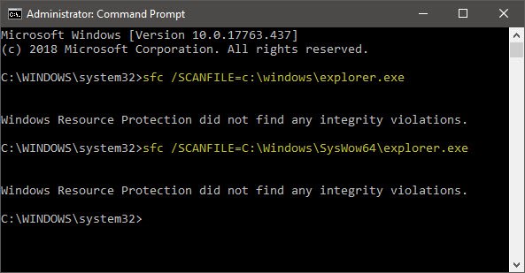 sfc /SCANFILE=C:\Windows\SysWow64\explorer.exe