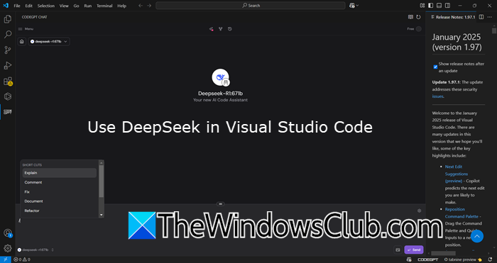 Se você deseja definir e usar Deepseek-R1 no Visual Studio Code, siga as etapas abaixo.