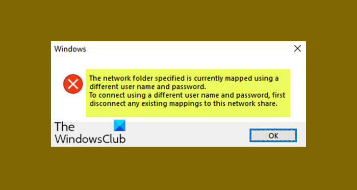 Se quando você tentarno Windows 11/10, mas você estáou conecte uma unidade remotamente com a mensagem de erroA pasta de rede especificada está atualmente mapeada usando um nome de usuário e senha diferentes, esta postagem tem como objetivo ajudá-lo com a solução/solução alternativa para o problema.