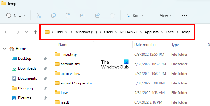 - Este comando abrirá a pasta que contém arquivos e pastas temporários.