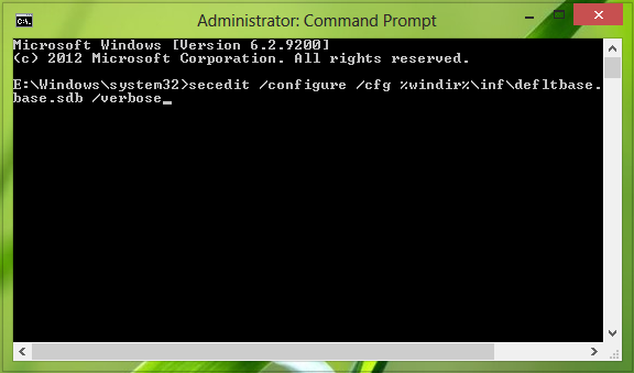 secedit /configure /cfg %windir%\inf\defltbase.inf /db defltbase.sdb /verbose