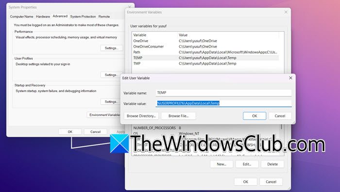 Uma pasta Temp (temporária) no Windows é um diretório usado pelo sistema operacional e vários aplicativos para armazenar arquivos temporários. Esses arquivos são criados para armazenar dados temporariamente durante a execução de um programa ou durante a instalação de software. Você tem permissão para alterar o local da pasta Temp reatribuindo a variável ambiental. Para fazer isso, você pode seguir as etapas mencionadas abaixo.